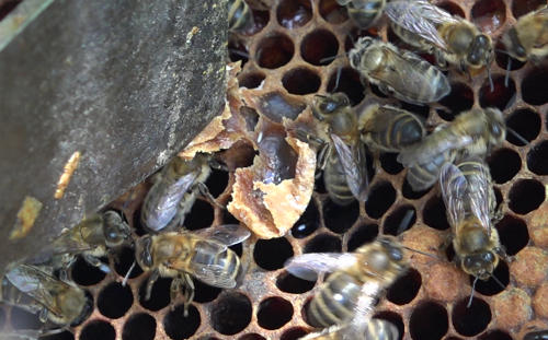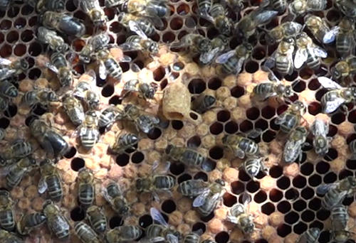 Moi aussi, en ouvrant une ruche qui tournait au ralenti ces derniers temps, j’ai trouvé une cellule royale en supersédure.