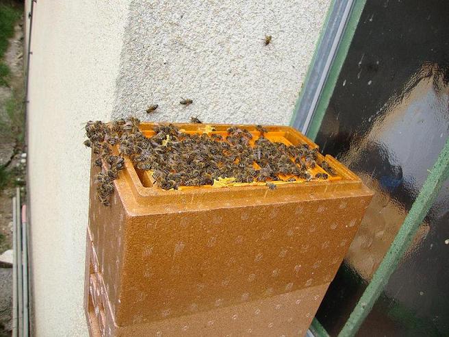C’est l’APIDEA N°5 (c’est mon premier hivernage d’APIDEA!) en 7 jours, le miel est fini dans le nourrisseur, j’ai voulu échanger le nourrisseur avec un plein (Toujours avec du miel!) IMPOSSIBLE! J’ai du allumer l’enfumoir pour faire rentrer tout ce petit monde! Du jamais vu un 19 décembre! Je crois que cette année le Père Noël va pouvoir se faire accompagner par des abeilles!