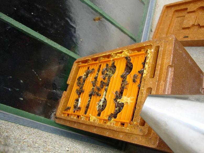 Les zazas ont fini le candi et commencé sérieusement à cirer le nourrisseur mis à l’envers. Je les ai fait descendre et j’ai remis du candi, c’est une colonie que je ne voudrais pas perdre, mais au printemps faudra prévoir un bon dégraissage!