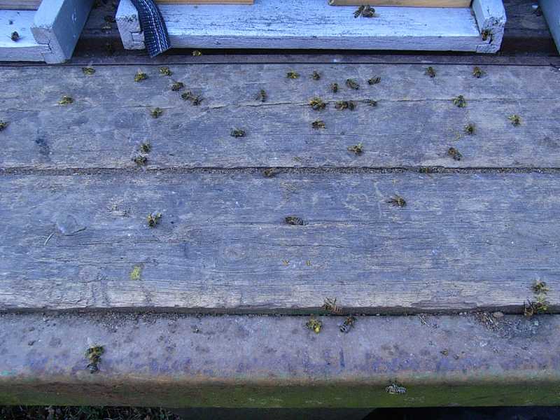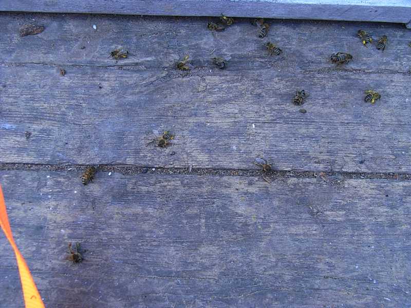 je constate qu’il a maintenant beaucoup d’abeilles mortes devant mes ruches sur le nouvel emplacement ,déjà hier, et aujourd’hui idem mais que d’un coté et pour beaucoup d’entre elles chargées de pollen !