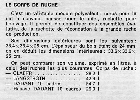 1 corps Dadant = 54 litresPar contre les 2 corps de Claerr, ne sont pas plein d’abeilles.