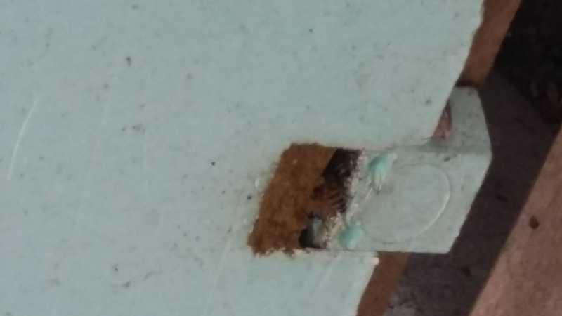 Ruchette polystyrène, il s’agit d’un essaim que j’ai fait mi-avril. A l’intérieur de la ruche tout va bien, l’essaim se développe bien et la ruchette est plutôt active. J’ai vu la reine hier. A priori pas de pillage, les autres ruches et ruchettes sont bien actives, à proximité du rucher tilleul, trèfle en fleurs donc pas de pénurie de ressources. Niveau climat, les ruches sont dans une zone de plaine bien abritée du vent.