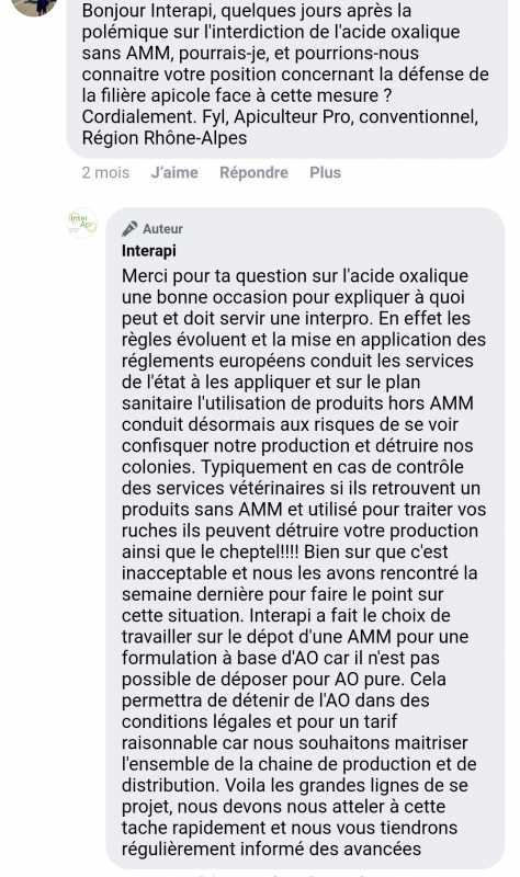 cela n est que la reflexion d un vielle api 85ans qui a conduit 500ruches pendant 60ansLa réponse est intéressante mais je trouve bizarre (désolé je dois faire parti de ceux qui voient le mal partout. ..) que interapi ne nous en ait pas sorti un mot sur quel média que ce soit !