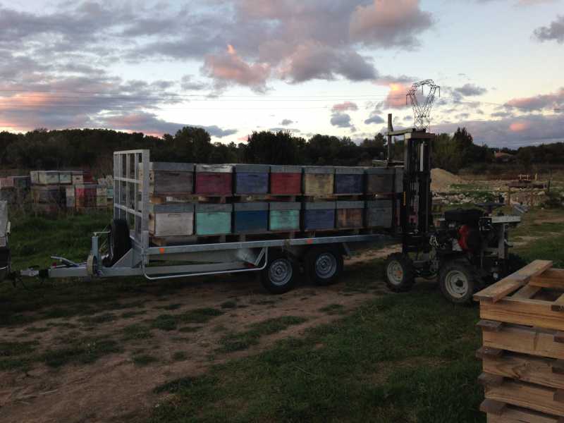 Entre chargeur et grue , le chargeur est bien plus polyvalent,Il faut des ruchers bétonnés