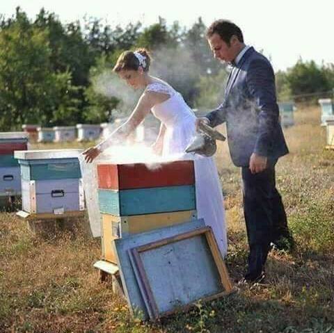 je suis que c’est possible de récolter de la propolis avec une robe de mariée!