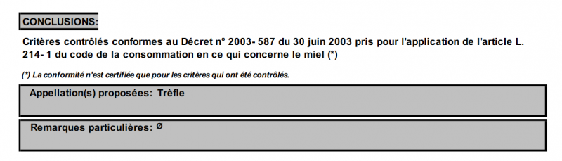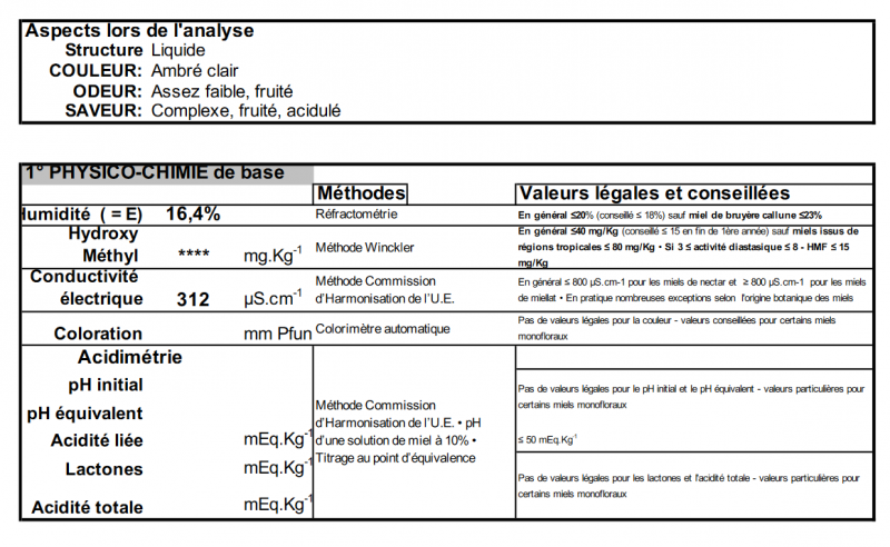 Moi je passe par le Cetam dont je suis satisfait. L’analyse de base coûte 42.00 euros. Ce printemps, le délai a été de trois semaines. Mais pour la récolte d’août, cela fut pour moi beaucoup plus long en 2018, plusieurs mois, mais ça m’est égal. Le responsable est très gentil. Il faut envoyer un échantillon avec le chèque. Les résultats sont envoyés par internet. Je mets la copie de ma dernière analyse. Tu pourras te faire une idée des résultats donnés. et si ça te suffit.Bonjour à tous,