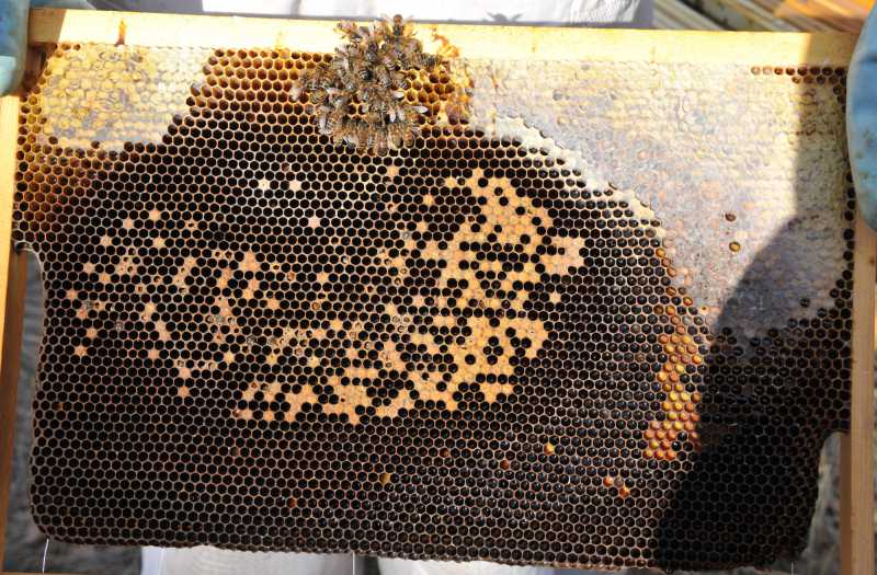 – Apparemment infestation varroa lourde : il est possible de confirmer en sortant des pupes. Ce doit être le Noël du varroa