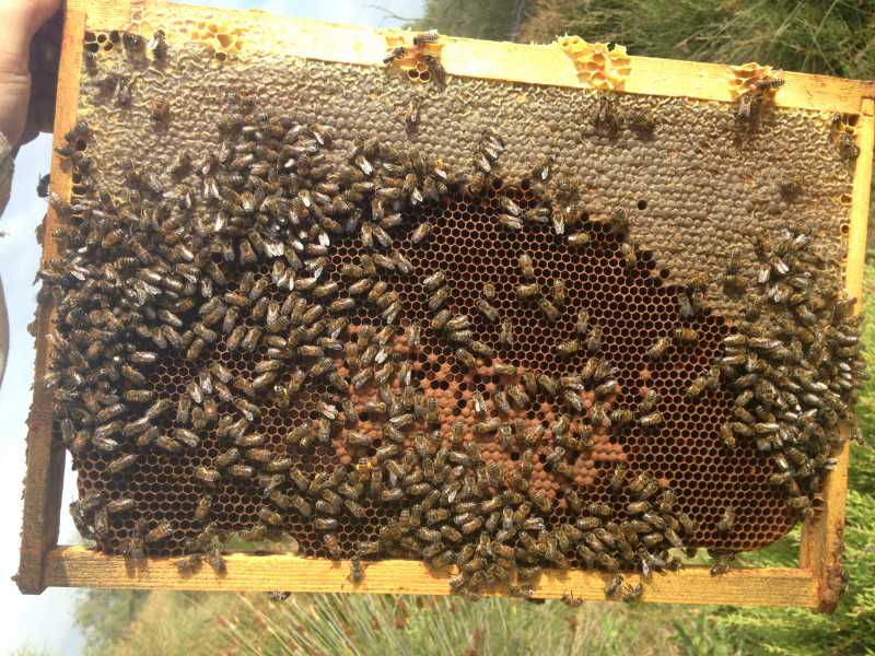 Visite des ruches de la lavande, elles se débloquent seules, entre 3 et 5cadres de couvain. 10 cm de ponte fraîche autour du couvain operculé. Du coup je vais poser des hausses si elles veulent en remonter. Je m’embête pas à faire les corps.