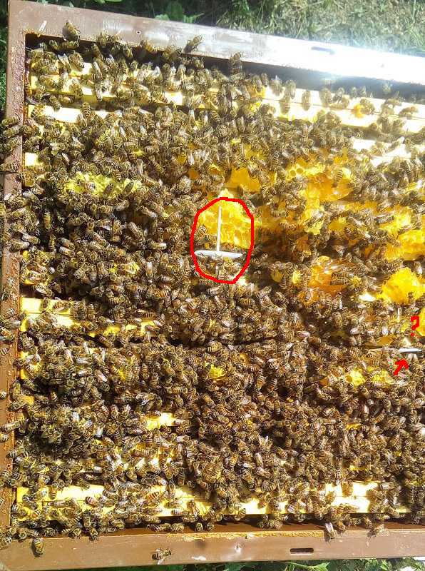 Pour lolo, ce “truc” comme tu dit me semble être des lanières de traitements “varroas” maintenus par un cure dent