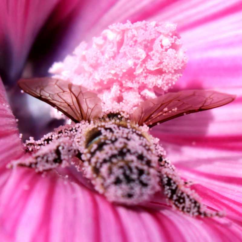 C’est très dur de faire le point au bon endroit, vu qu’elles ont du mal à tenir la pause, sauf quand elles se vautrent dans le pollen pour aller chercher le nectar au fond de la fleur (Lavataires).