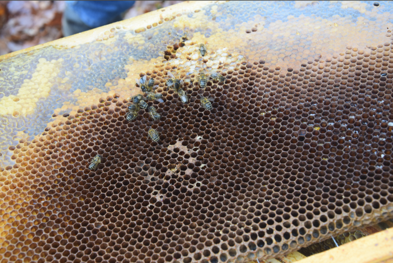 Valentin, j’hiverne des ruches qui sont cuches après miellées de sarrasin, renouée, et lierre, 9 semaines d’arrêt de ponte de début novembre fin décembre !!