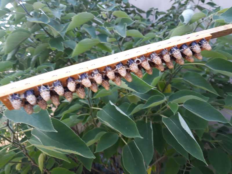 Et……………………non ! Ce n’est pas un boitier RG, mais une boite à pondre Jenter, mais ce n’est pas aussi simple que sur les documentations, il ne suffit pas d’enfermer la reine, puis de réouvrir pour récupérer les larves, faut que “sa majesté” accepte d’y pondre, ET, qu’ensuite les abeilles ne décident pas de nettoyer la boite, parce que là c’est sec comme un oued d’Afrique du nord en période de grande sécheresse !
