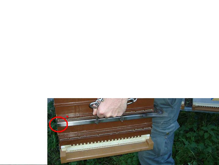 la chaine ou sangle qui t aide a lever la ruche est un faux avantage mes semble t il car le poids exercé par la caisse, en la levant est toujours sur les lombaires !!!