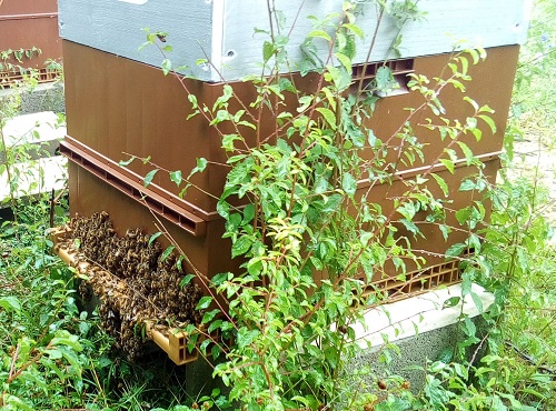 Sur certaines colonies les abeilles bronzent sur la planche d’envol.