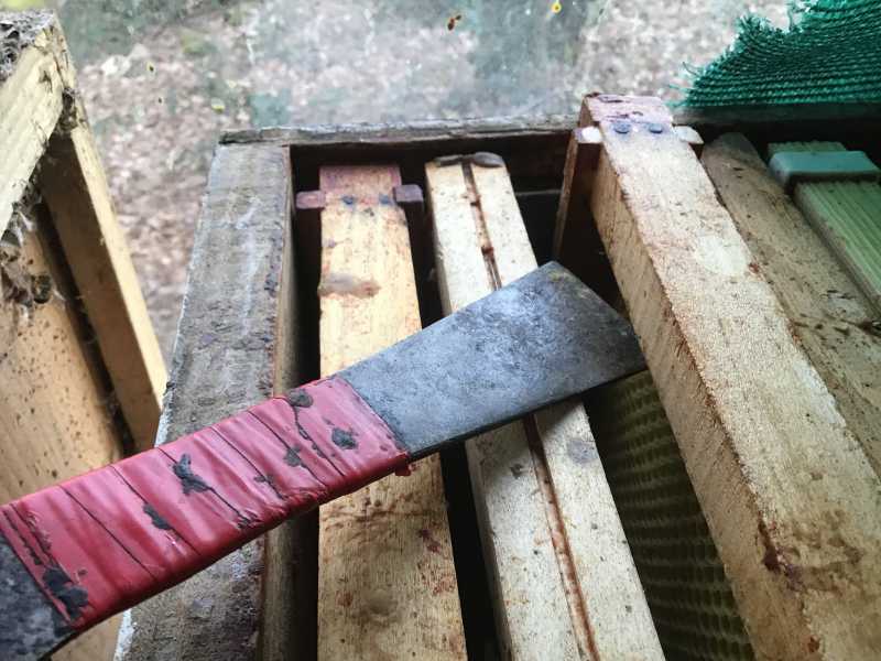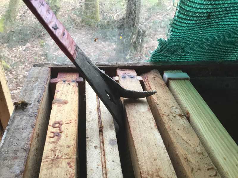 Ça m’a sorti 2 fois d’un bazarre dantesque, ( deux veilles ruches récupées mais sans entretien depuis 4 ans tout ne formait qu’un seul bloc ) faut juste faire gaffe à la reine et pas faire de la bouillie !!!!