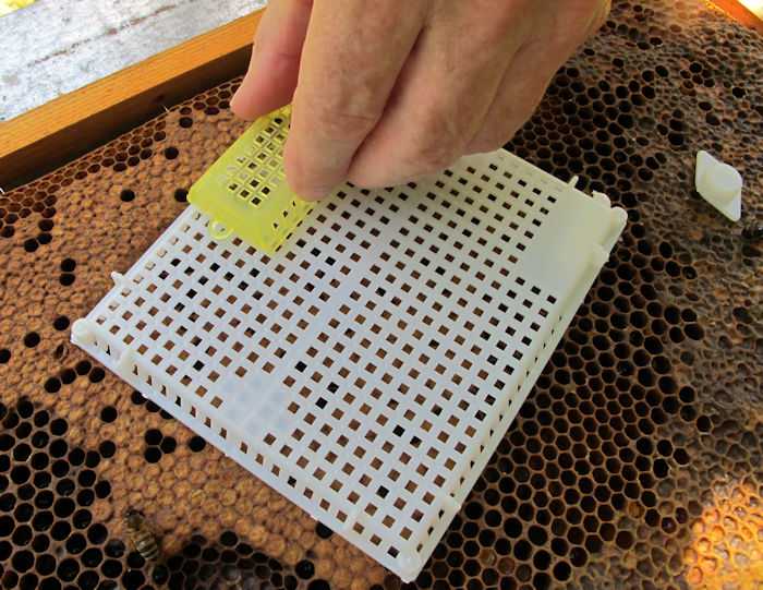 L’idéal serait d’introduire la reine (fécondée) dans une cage de ponte, qui lui permet de pondre aussitôt tout en étant à l’écart des nourrices potentiellement agressives.