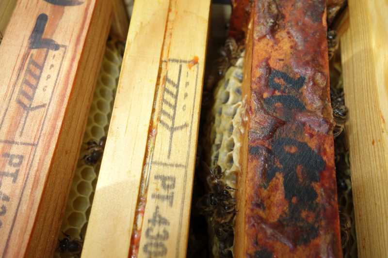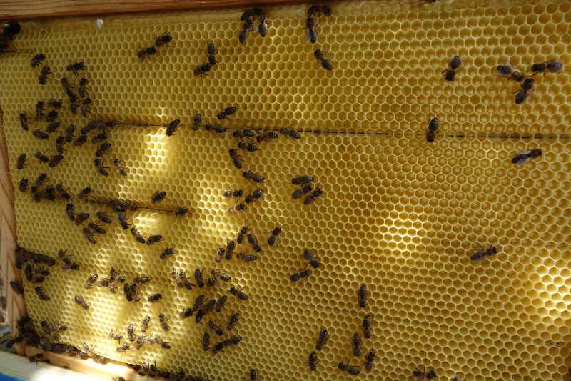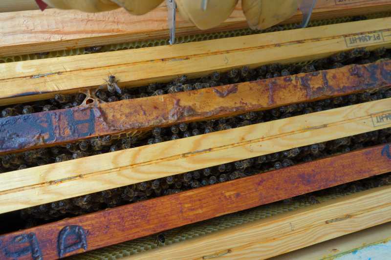 l’idéal serait de voir dans une ruche vitrée au printemps avec un essaim sain, l’évolution du couvain et du stockage miel/pollen dans ces cires. C’est en prévision pour le printemps prochain ou je mixerais cires/couvain/miel (4), cires étirées vierge (bâtit Favus 4) et cadres à jambage (2) pour photographier régulièrement ou filmer avec un essaim et reine fécondée 2018.
