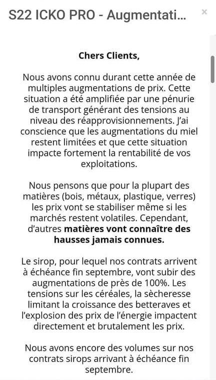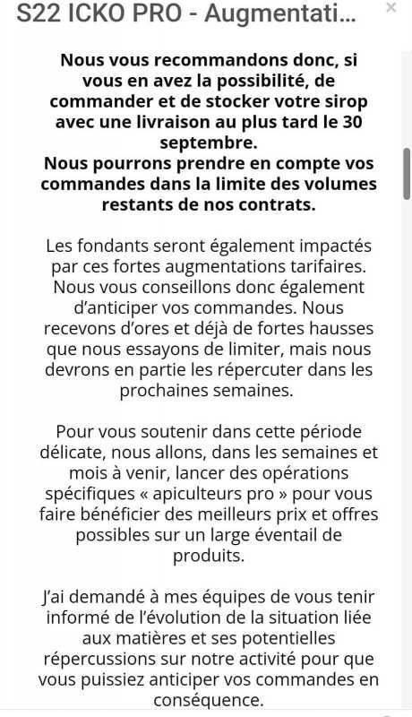 Augmentation de 100% …. Je sais pas comment les apiculteurs se servent encore chez ce genre d escros….