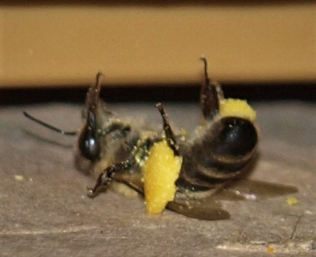 Champs rayés et cadres de pollen en damier car le pollen de coquelicot est noir.