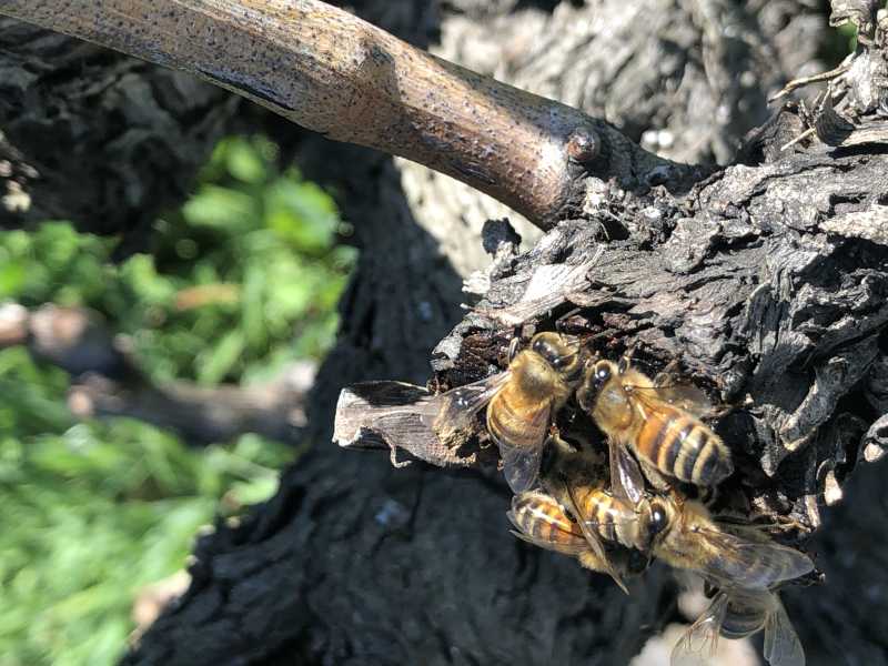 Les abeilles pompent la sève de vigne , elles doivent y trouver des choses bonne pour ellessalut seb