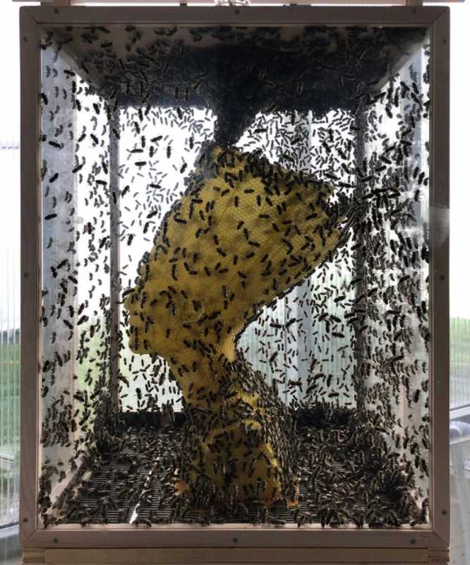 Les abeilles sont là pour la déco.Il n’y a ni miel ni couvain dans sa structure.
