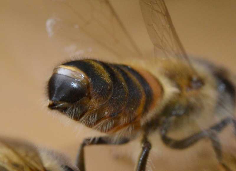 Une macro sur glande de Nasanov, photo prise sur le rucher par mon ami Chris, qui se reconnaîtra