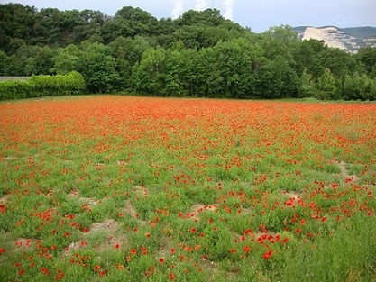 Ou vous voyez des champs de coquelicots se sont des jachères agricoles, donc aucun désherbant, mais normalement broyage après les quinze août