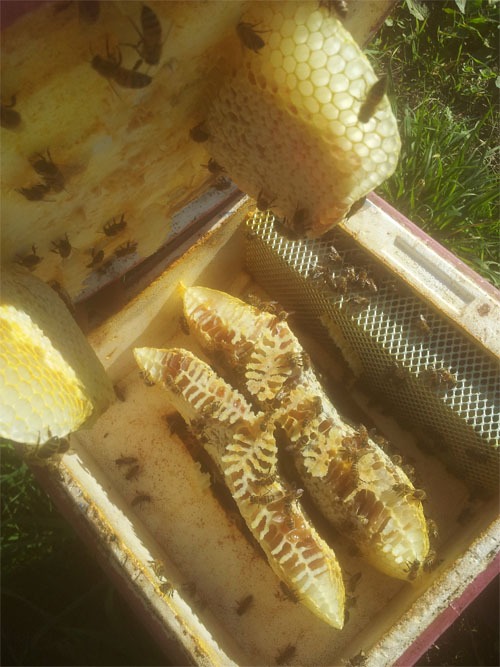 On introduit une cellule la veille de son émergence ou une reine vierge directement en l’ayant au préalable imbibée de miel.