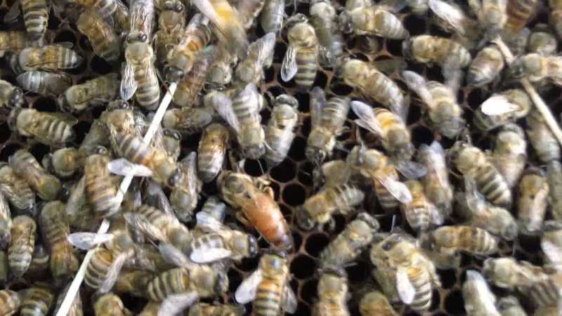 Pour constater l état general c est l observation du couvain. Pour la présence de la reine tu recherche des oeufs.