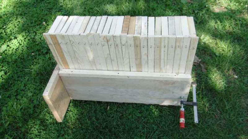 Pour les ruches ou hausses, faites EXACTEMENT de même deux fois. Cela donne deux fois un petit côté et un grand assemblés d équerre. Ensuite assembler ces deux moitiés entre elles.