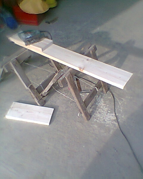 outils : là deux chevalet pour permettre une découpe à la scie sauteuse (une caisse en bois aurais suffit ou un vrais établis )