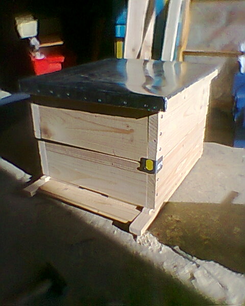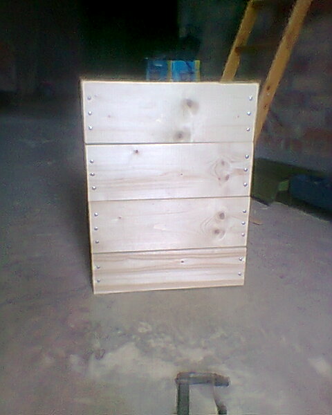 le tout monté : corps (petite moitié du bas) et les deux hausses (soyons optimiste (et puis il me restais du bois))