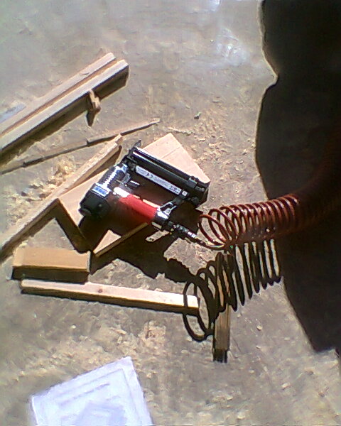 que mon frangin sorte le compresseur et l’agrapheuse pour essayer de monter les cadre