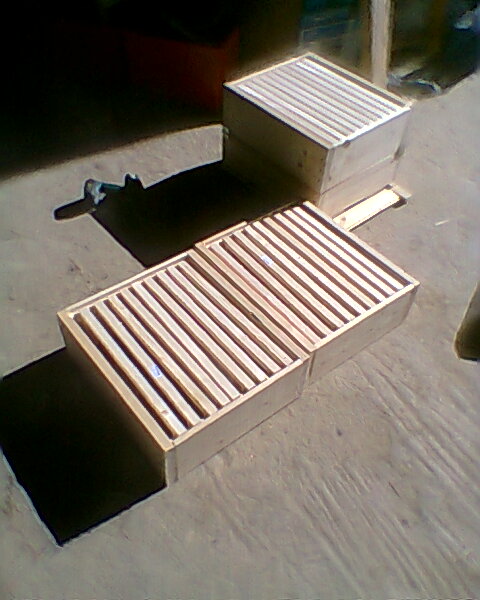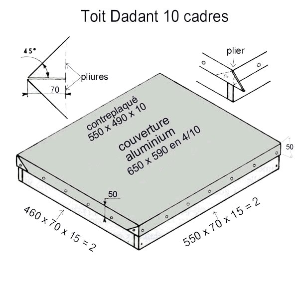 car le bois de meilleur qualité mais de dimenssions inexactes et surtout non correspondante m’obligerais à tout recalculer et en final à ne pas être compatible avec le materiel du marché ou des autres apiculteursles languette métale pour poser les cadres à éspacement je vais voire pour les construire si possible coupé plié en tole