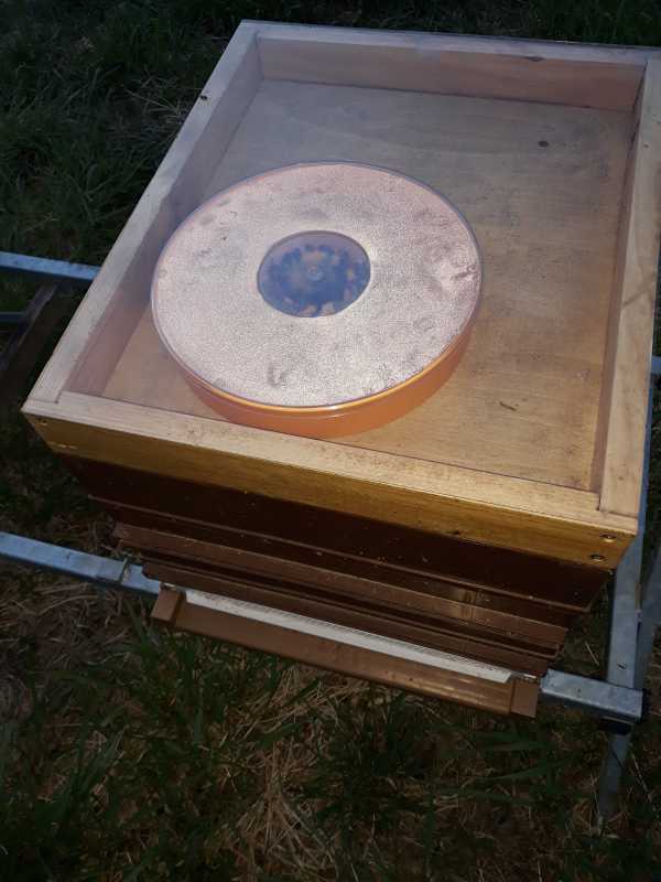 Je fonctionnait pareil que toi quand j’avais des warrés, couvre cadre bois et nourrisseur nicot rond de 2 litres. Je les ai gardé ces nourrisseurs pour les ruchettes avec couvre cadre rehaussé.