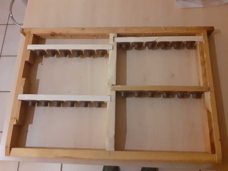 il y a 5 années et 10 moisRang: ReineMessages: 2391Nb de ruches: 15Localisation : 38500 Voiron, IsèreEt voila, mon cadre porte cupules est prêt et les lattes a la taille de la couveuse