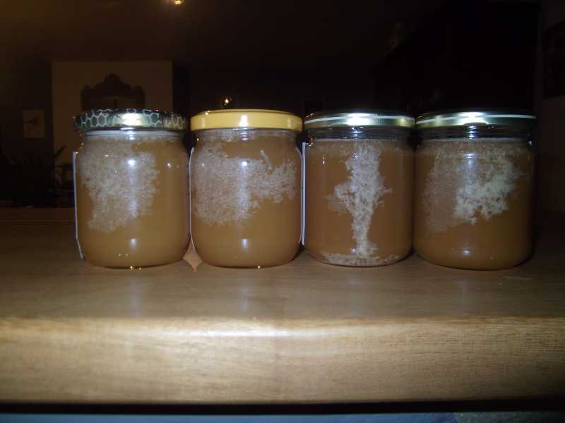 Mon miel de forêt qui a cristallisé très vite présentait (tout vendu) aussi des marbrures, qui ont été encore plus prononcées avec le froid sur les marchés.