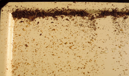 J’ai remarqué sur les plateaux fermant le plancher, que j’ai mis récemment, des déchets noirs et abondants, sur une ruche.