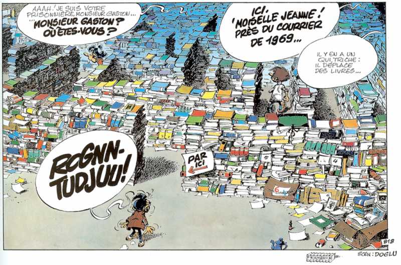 Non seulement la bibliothèque de Gargamiel semble inépuisable, mais en plus on voit qu’il s’y retrouve toujours !