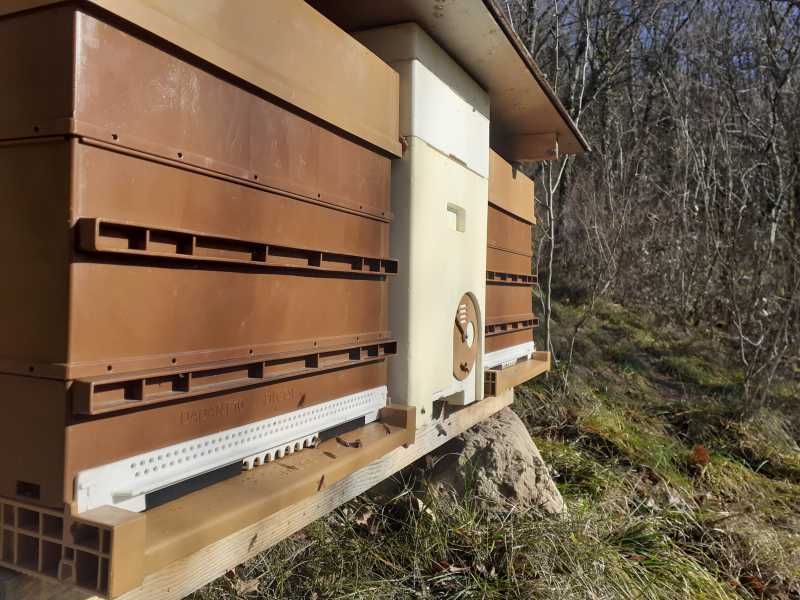 J’ai une ruchette qui hiverne “en sandwich” entre 2 ruches, ce qui d’ailleurs a l’air de leur plaire car elles sont généralement les premières à sortir. Problème je ne pourrai pas écarter le tout pour la passer en Dadant 10 ce printemps, je dois mettre une palette en plus et la déplacer de 2m.