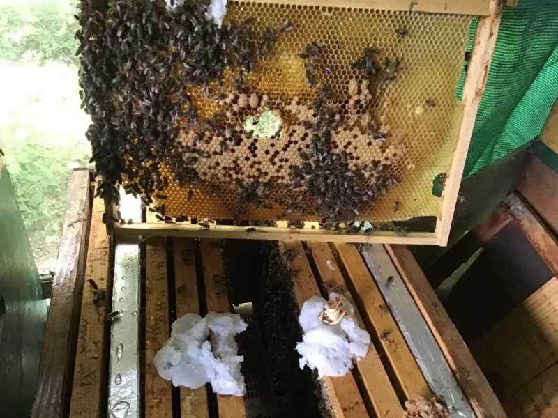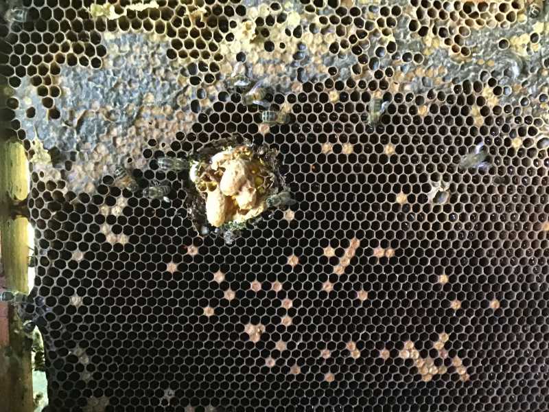 Ce matin, je suis allé voir la ruchette. Après ouverture, j’ai constaté une colonie assez forte avec embouteillage sur le trou de vol et des cadres de miel et de pollen mais pas de couvain et la présence d’une CR operculée. Qu’en pensez-vous ?Merci