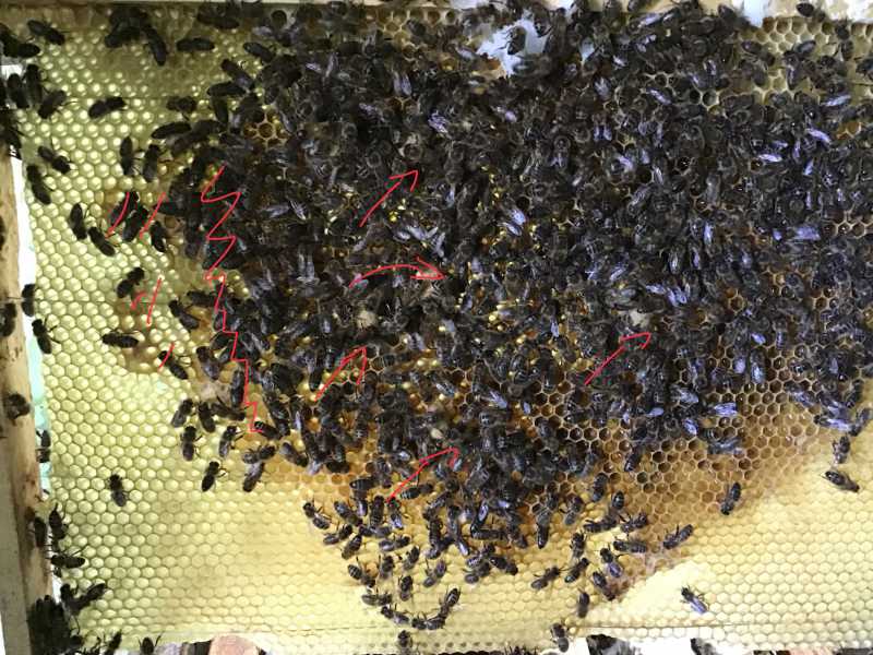 Bonsoir voilà 3 cadres de ruches où ils y avaient des reines , une j’ai refiler une cr qui est posée ( cupules née avant les cr du cadre ) une pas vu de reine,de ponte je rajoute des cr puis une résistante avec remérage , les zaza ont toujours le dernier mot