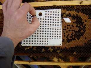 quand il y en a une poigné tu met ta cage que tu plante sur le couvain et tu enfile la reine par le trou aménagé !!
