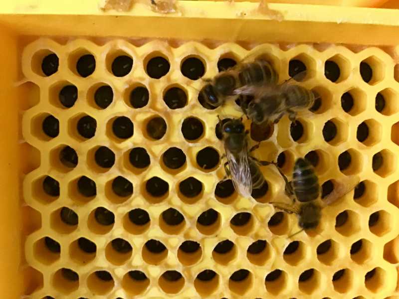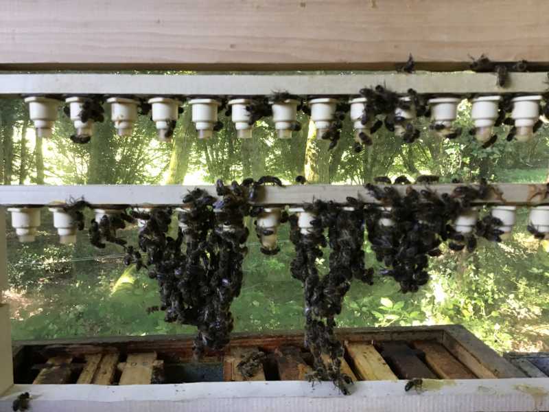 Hi hi hi deux barrettes 30 cupules 50% de réussite le premier jour de la pose de la grille à reine sans orfelinage, impeccable pouvait pas rêvé mieux , j’ai lâché la deuxième reine elle a pondu ,j’ai donc passé le cadre dans la ruche avec les cr