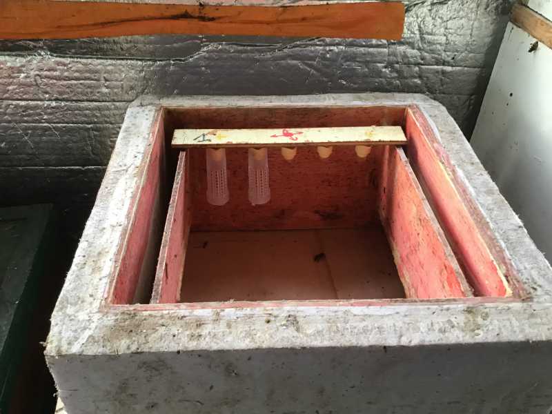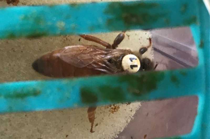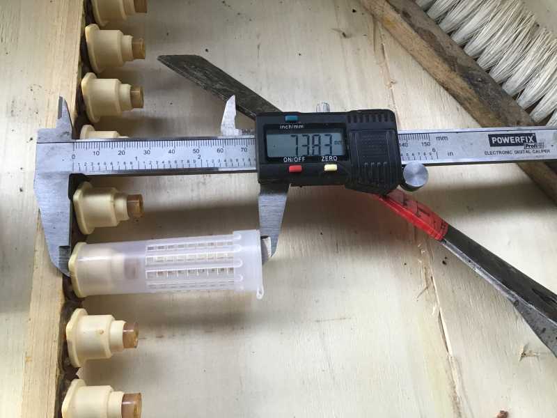 je me perfectionne , repérage rapide ( attention sa vole ) pince puis dans le tube , une goutte dans la pastille ( maintenant ) éviter qu’elle se gratte tout de suite ( le piston c’est encrassé avec un peu de cire ) du coup je ne laisse plus d’espace à la reine sans la bloquée mais plus le piston en bas pour le séchage , en gros je me fais la main