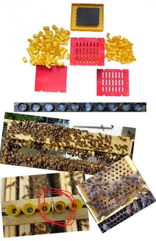 Il a clairement expliqué qui fallait la petite collerette en cire autour du petit “bol” jaune, pour que les nourrices prennent rapidement en compte les larves au moment de l’introduction dans l’éleveuse.