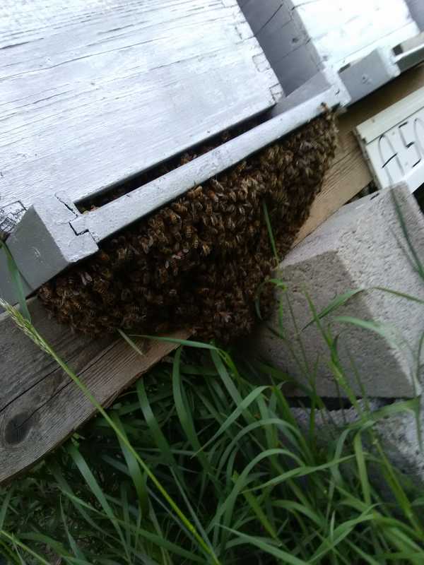 Si la grappe extérieure représente par exemple 1/3 des abeilles, la reine doit être à l’extérieur, donc les cadres attirent une partie des abeilles et le reste se trouve avec la reine dehors.