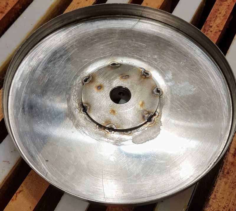 Tu peut aussi renforcer le p’tit couvercle en ajoutant une selle de renfort ou une fourrure, c’est à dire une rondelle en tôle (inox bien sûr!) d’environ 100 mm de diamètre soudée, tu vas éviter les concentrations de contraintes autour de la bague de maintiien.