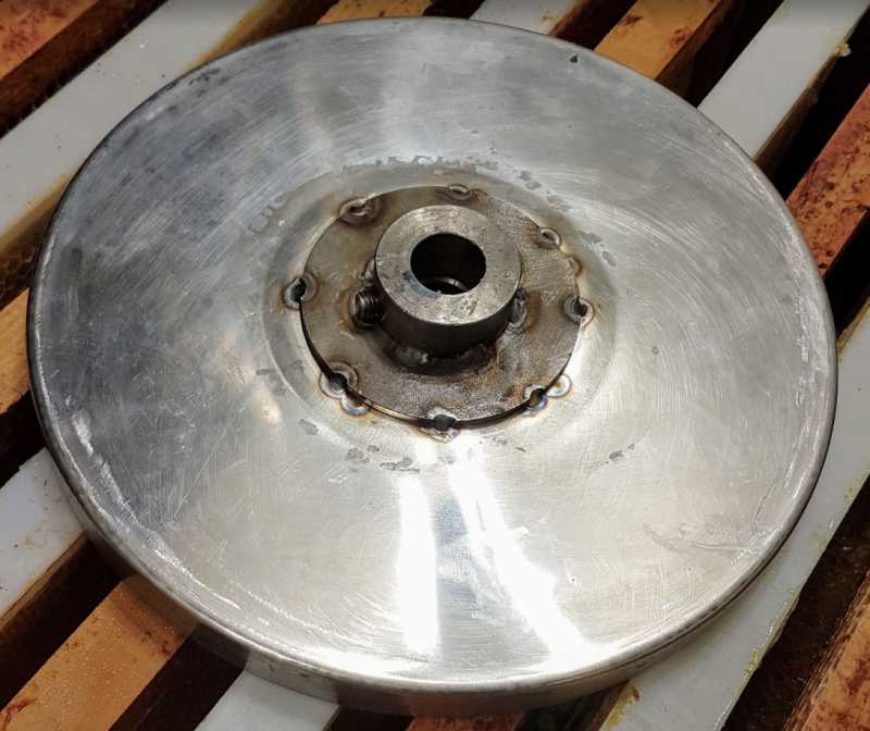 la plaque est soudée a la pointeuse , les reste de tôle ” feuille a cigarette” resouder a leur place par un soudeur , meuler propre , refaire une cage plus grande en diamètre pour le roulement ,pour augmenter la portée et enfin une deuxième cage pour emprisonner le roulement qui avait tendance a ce barré .