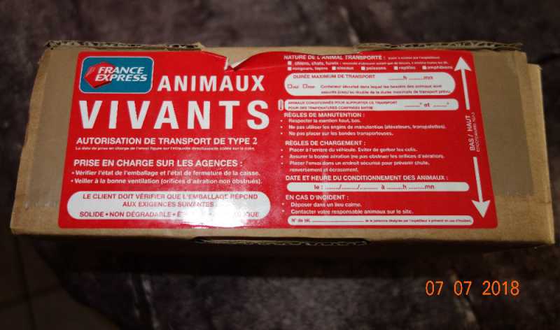 légalement la poste ne fait pas le transport d’animaux vivant ……………….sauf ………….. une vielle loi qui date de je ne sais plus quand qui stipule que la poste a obligation de transporter un seul animal vivant … les reines abeilles !!!!!!!!!!!
